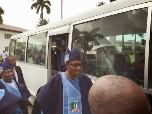 Pics: Gen. Buhari at Governor Fashola's Lagos residence today